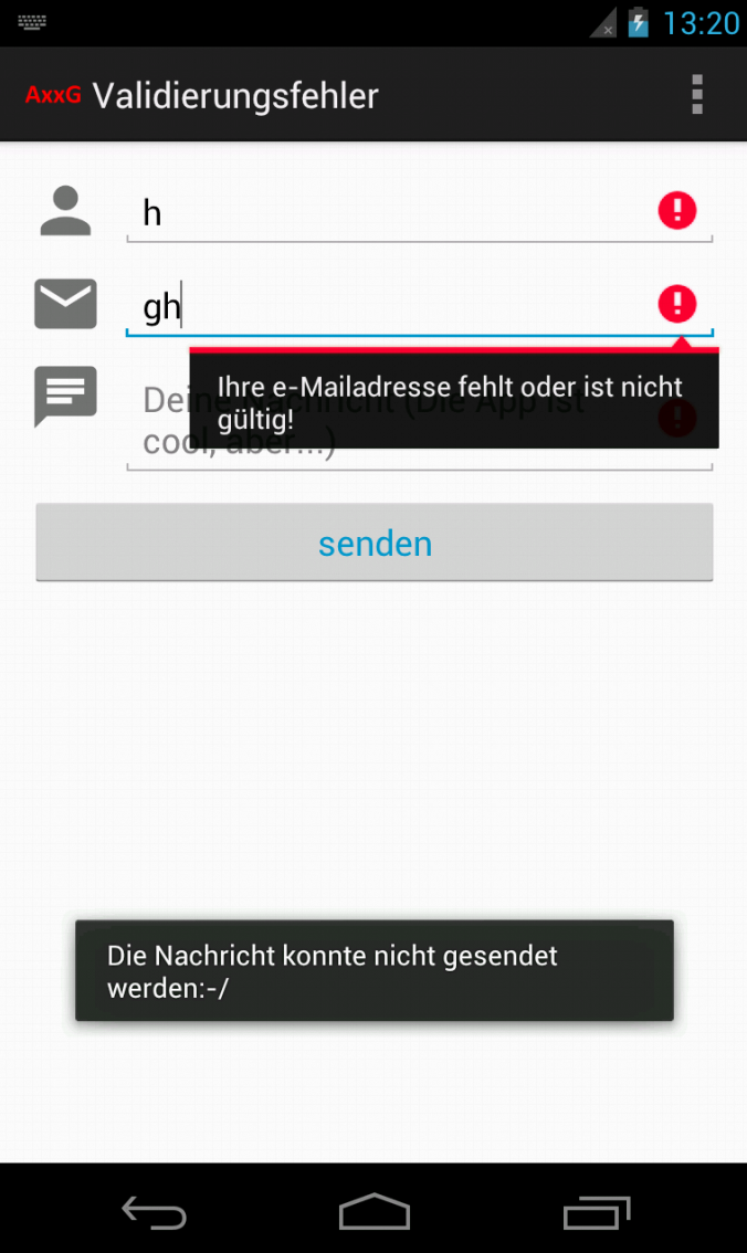 Der schlimmste Feind eines Entwicklers ist der unerfahrene und ambitionierte User. Diese Art von User bringt die App / das Programm an ihre / seine Grenzen. Besonders Abweichungen vom Use-Case und willkürliche Benutzereingaben erfordern höchste Konzentration und Vorstellungskraft des Entwicklers. Neben der eigentlichen Validierung der Eingaben ist auch das Benutzerfeedback sehr wichtig. In dem heutigen Beitrag zeige ich euch wie man in einer Android App, meiner Meinung nach, gutes Benutzerfeedback nach einer Validierung gibt.